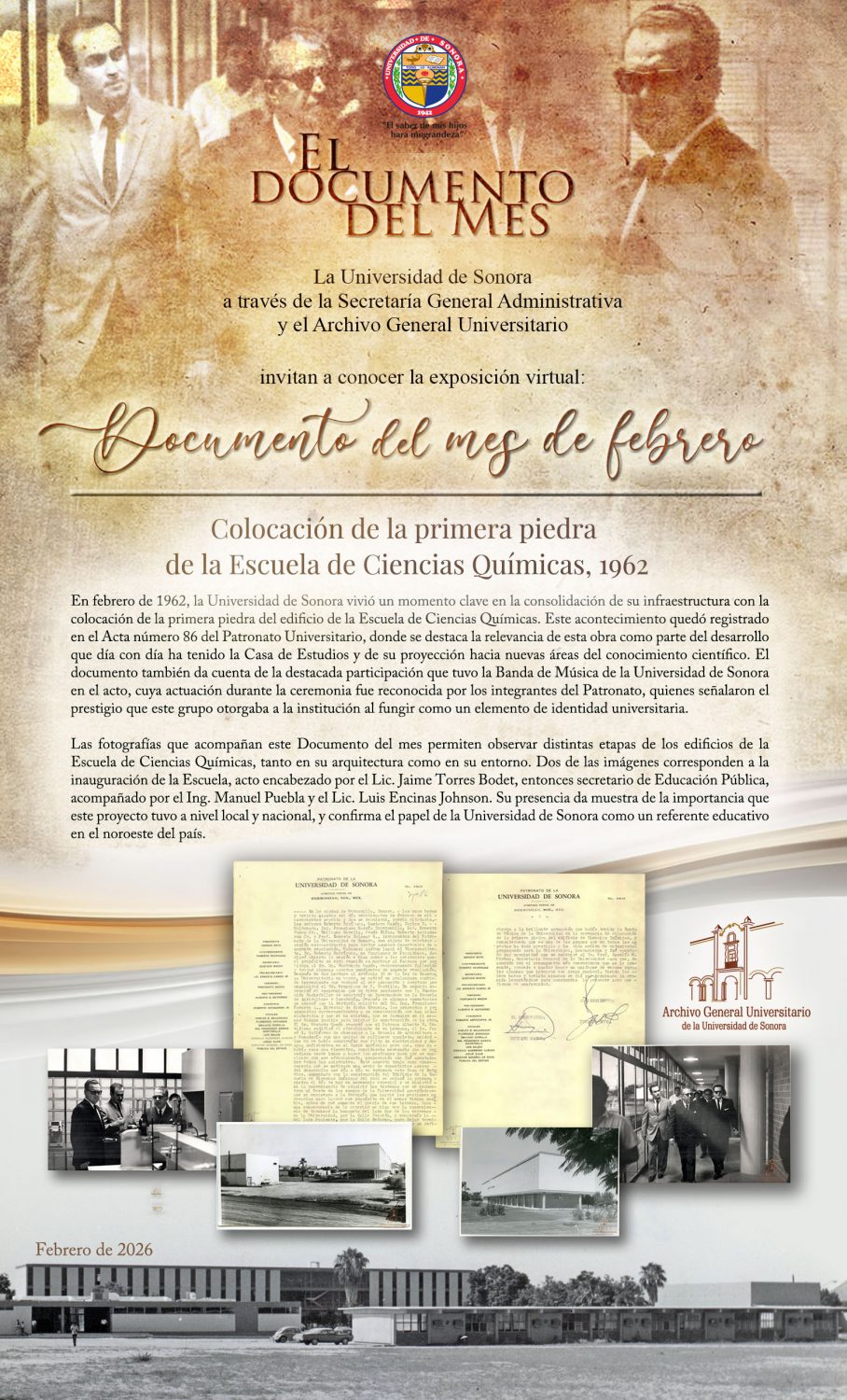 Documento del Mes de Febrero Como Documento del Mes de febrero nos permitirá observar distintas etapas de los edificios de la Escuela de Ciencias Químicas, tanto en su arquitectura como en su entorno.